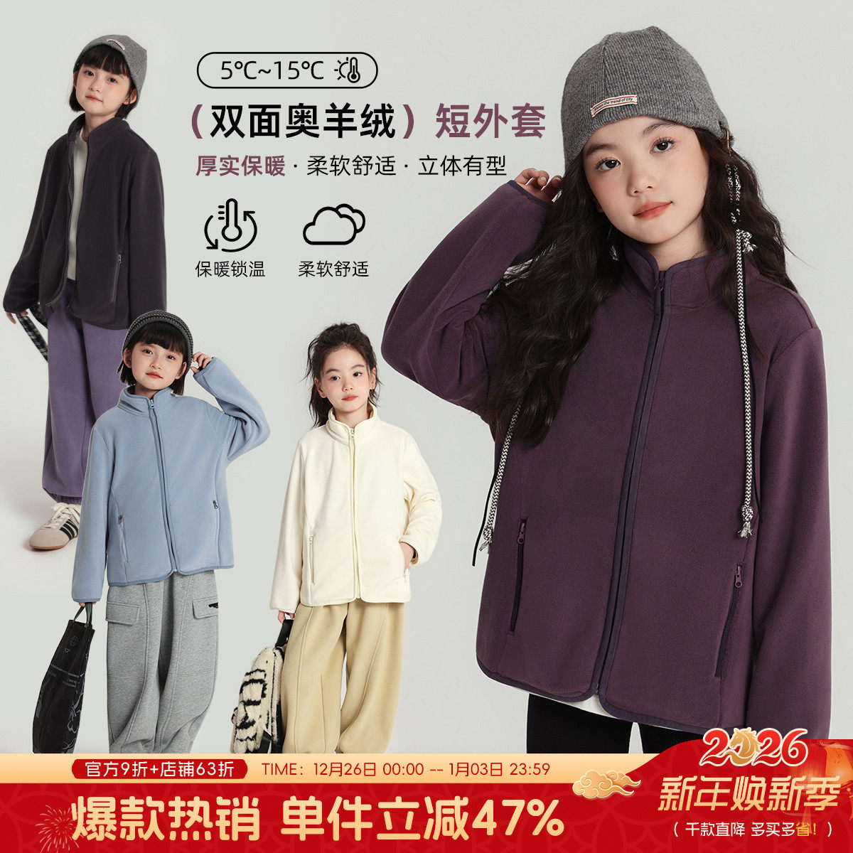 布丁哈鲁冬装童装简约上衣2025秋冬款儿童休闲双面奥羊绒短外套