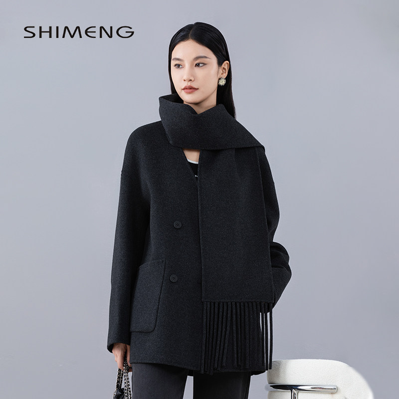 声雨竹官方旗舰店2025秋冬新款绵羊毛呢厚款外套山羊绒短外套女