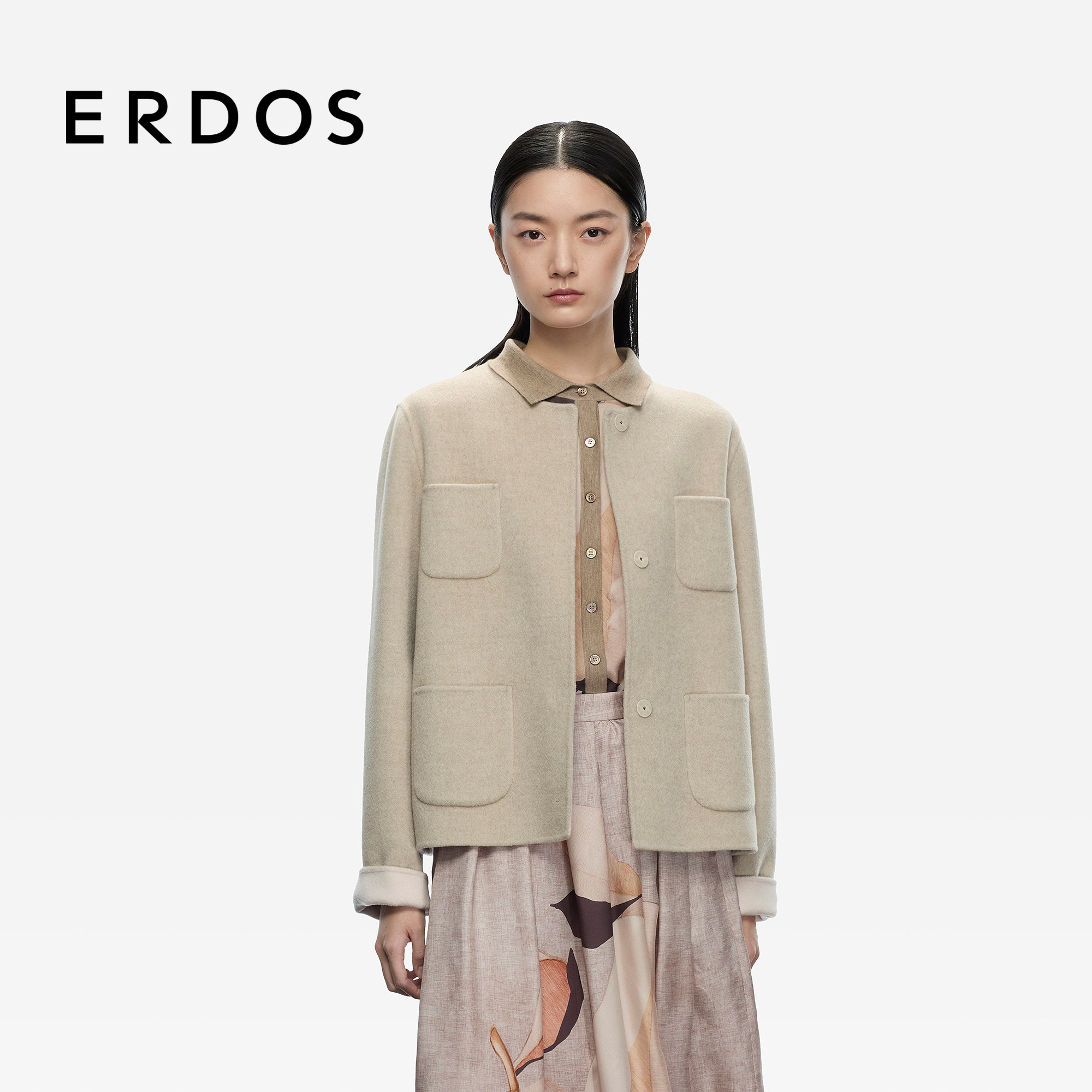 ERDOS 女士纯羊绒短外套25年秋冬新品蓬松双面穿着宽松休闲呢外套