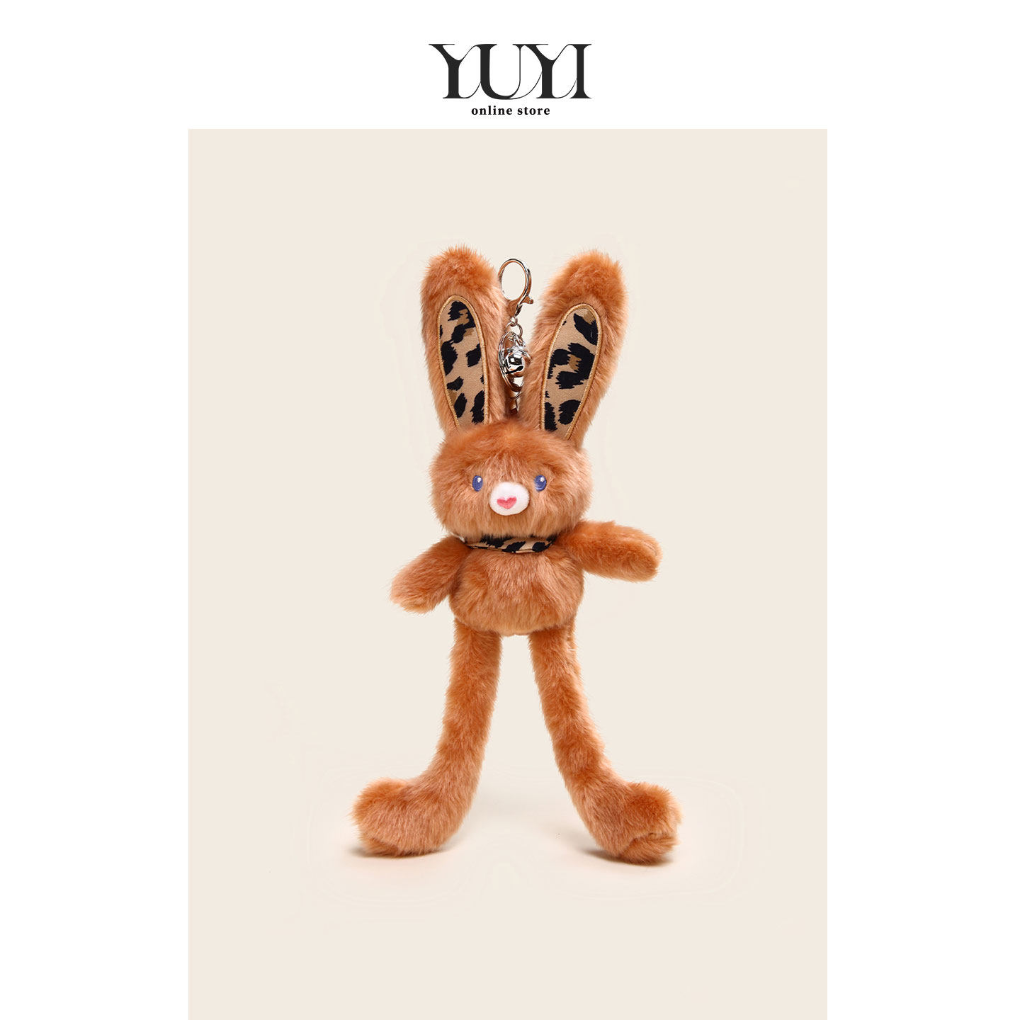 YUYI原创可爱豹纹抽拉耳兔子公仔玩偶情侣礼物书包包挂件钥匙扣女