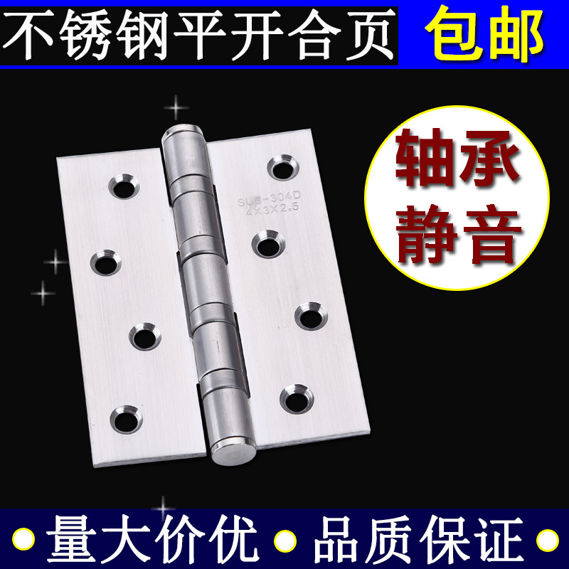 平开合页 不锈钢304静音轴承铰链折叠活页卧室房木门开槽 4寸合叶