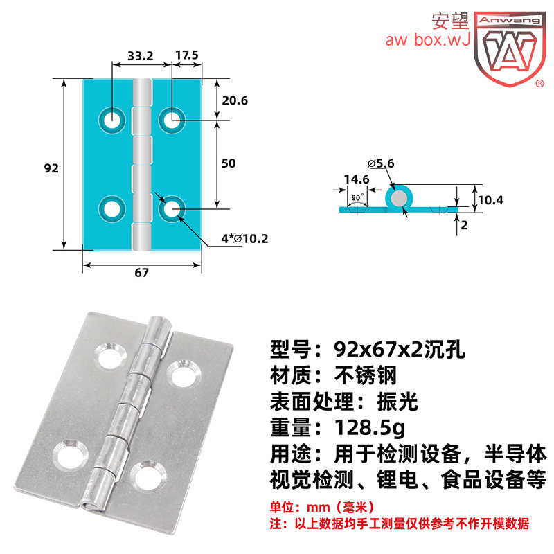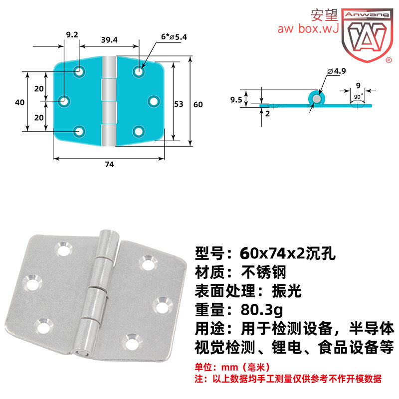 AW安望 85X136X2.5 平孔冲击合页 不锈钢304工业合页机械设备机箱