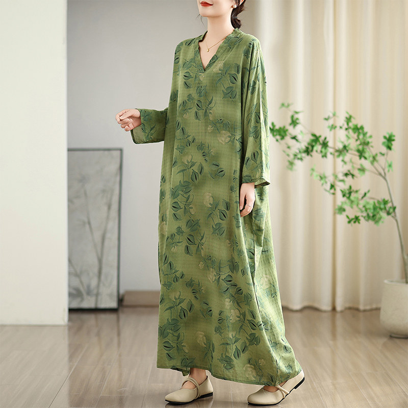 - 民族风真丝连衣裙