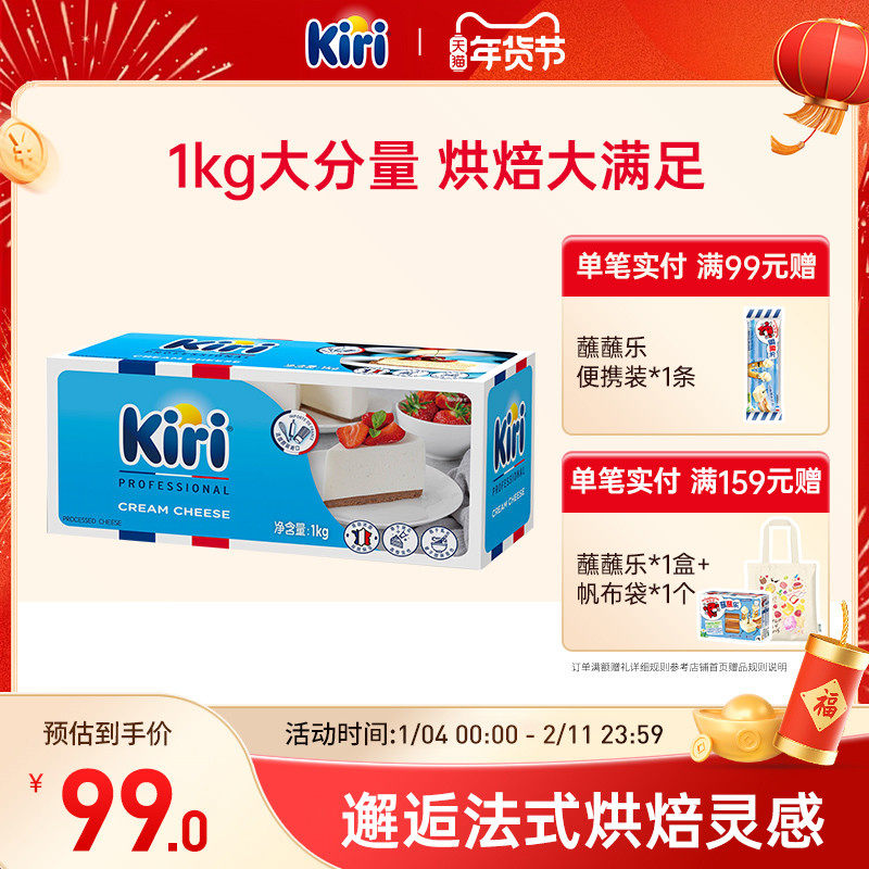kiri凯瑞奶油奶酪1kg 法国进口凯芮芝士干酪乳酪蛋糕家用烘焙专用