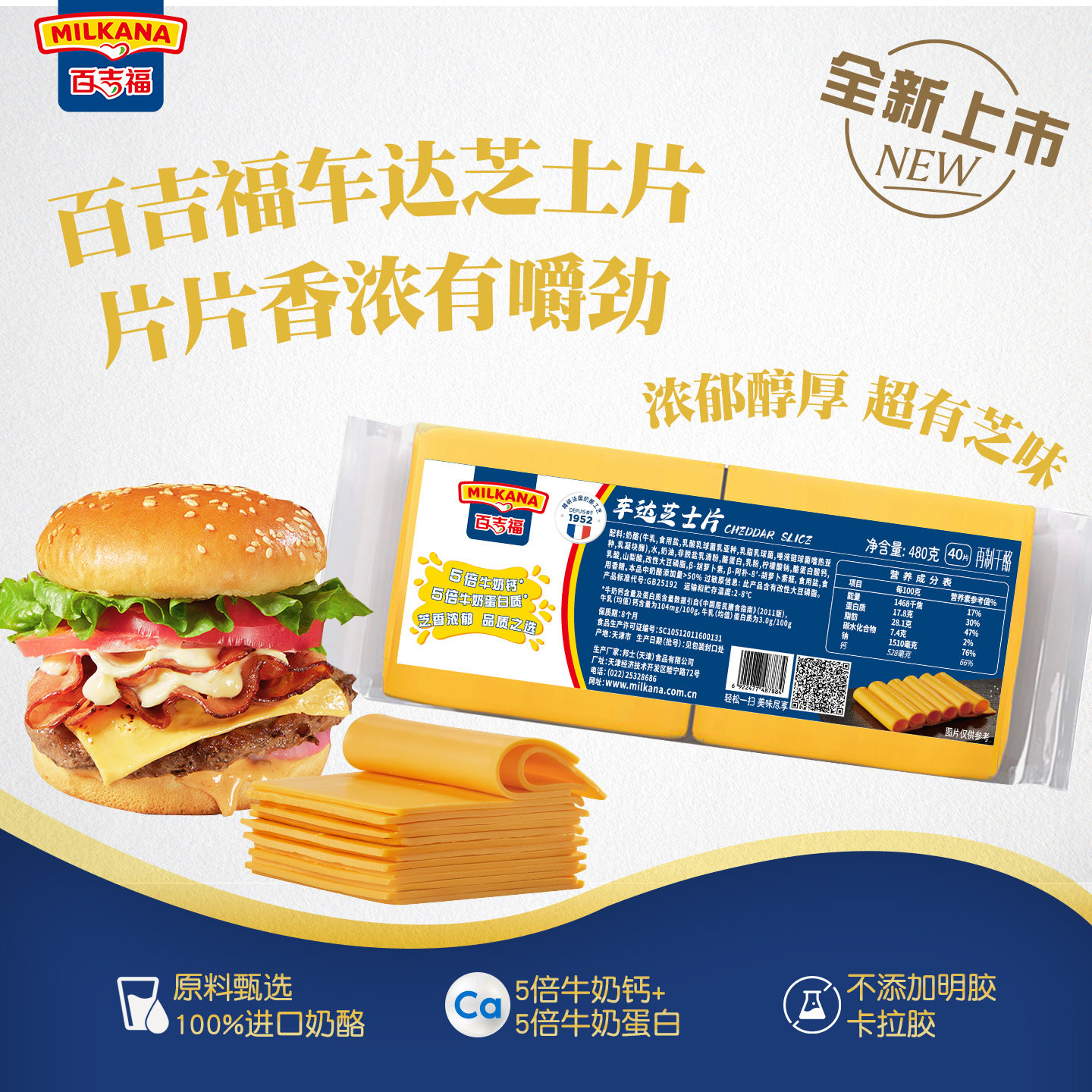 百吉福汉堡干酪片80片装车打芝士片切达汉堡奶酪960g黄片烘焙商用