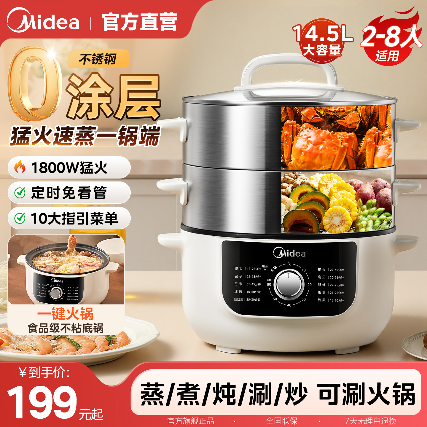美的电蒸锅多功能家用三层不锈钢蒸汽一体锅大容量电蒸箱官方旗舰