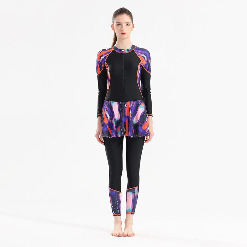 防晒泳衣女保守显瘦分体潜水服浮潜水母衣冲浪服长袖长裤温泉泳装