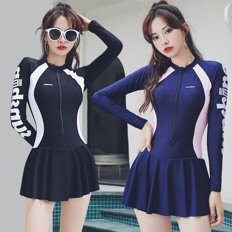 游泳衣女韩国ins长袖防晒连体保守显瘦度假温泉专业冲浪服潜水服