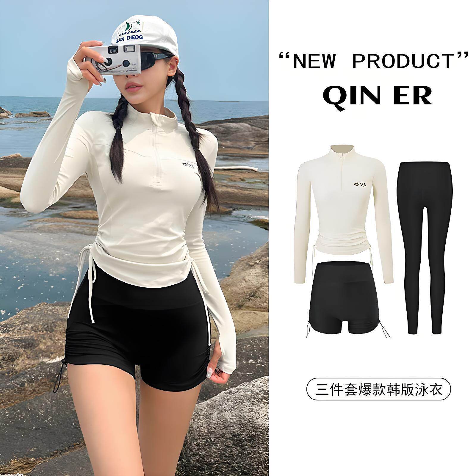 游泳衣女分体三件套2025新款保守防晒长袖长裤潜水女士泡温泉泳装