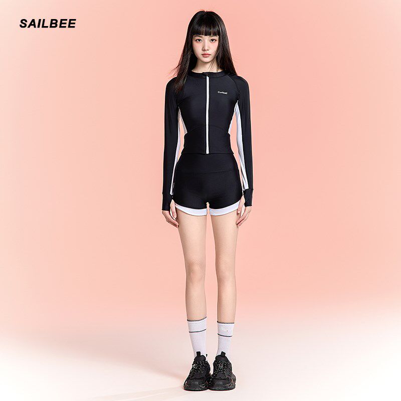 B.Duck运动连体泳衣女长袖防晒新款时尚平角显瘦保守高级感泳装