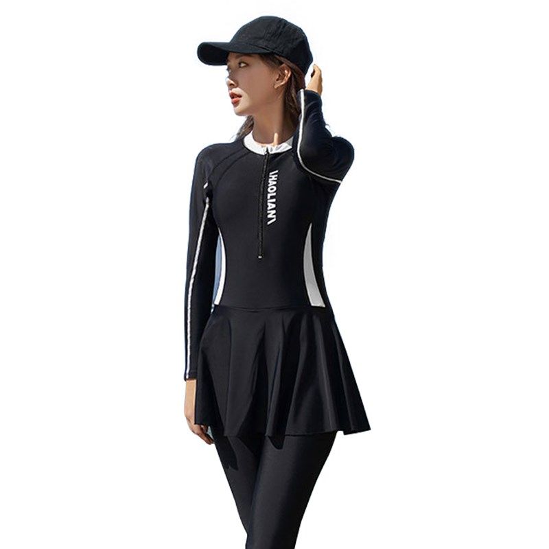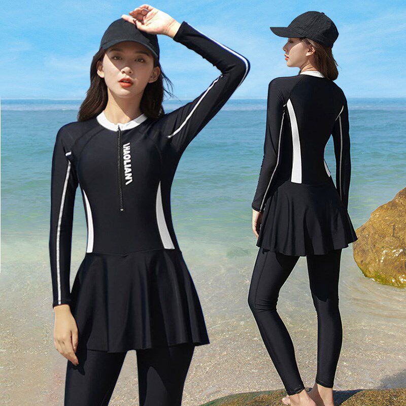 女士泳衣全身防晒泳衣女保守裙式连体长袖长裤显瘦泳衣大码潜水服