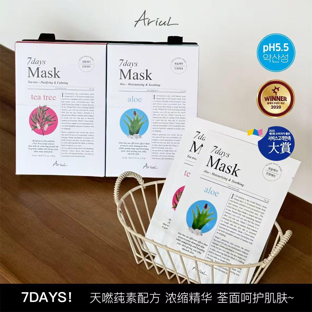 韩国ariul艾藜儿7天植萃面膜茶树控油祛痘去闭口镇静舒缓芦荟提亮