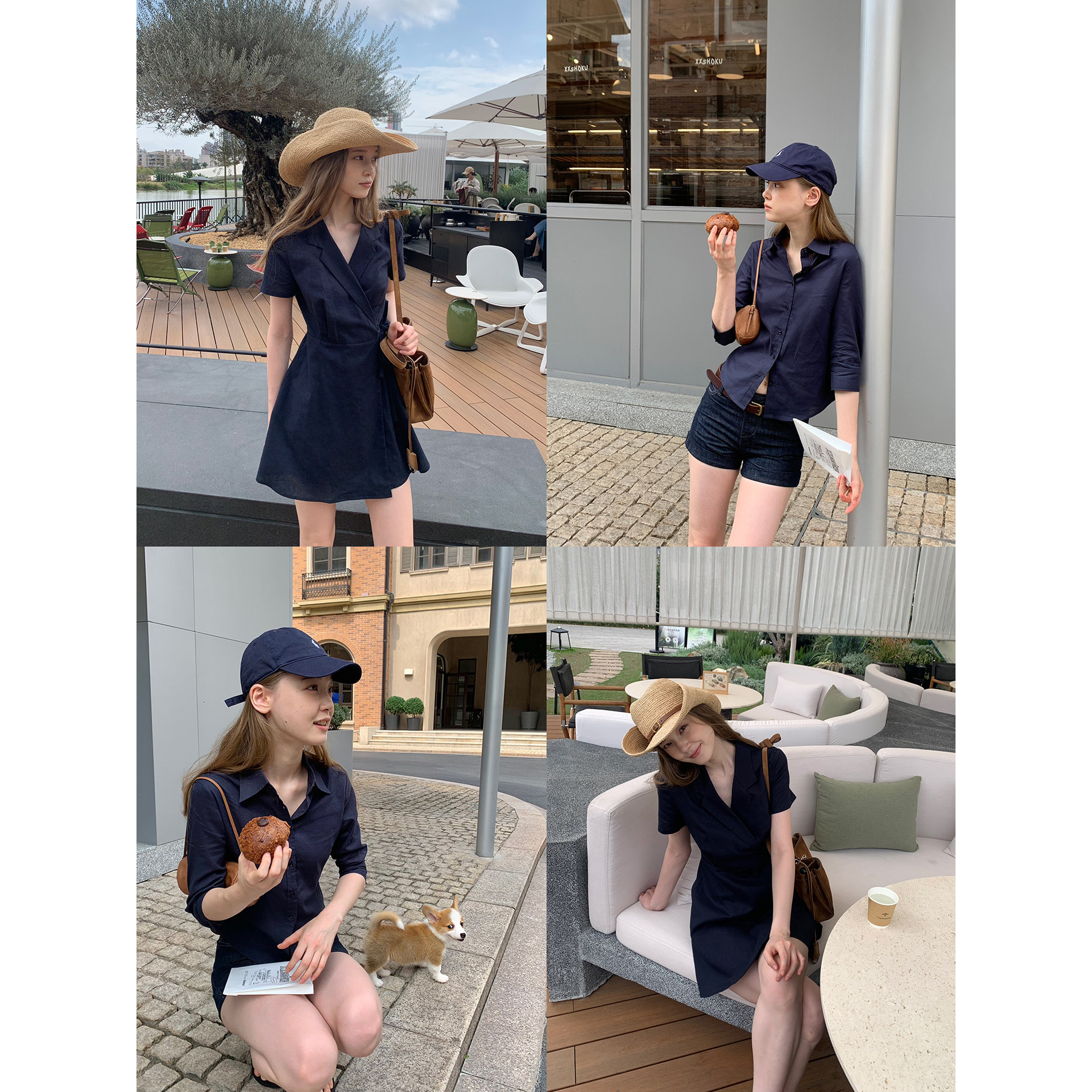KERNEL COSMOS蒙苏尔海岸 春夏老钱棉麻气质衬衫一片式绑带连衣裙