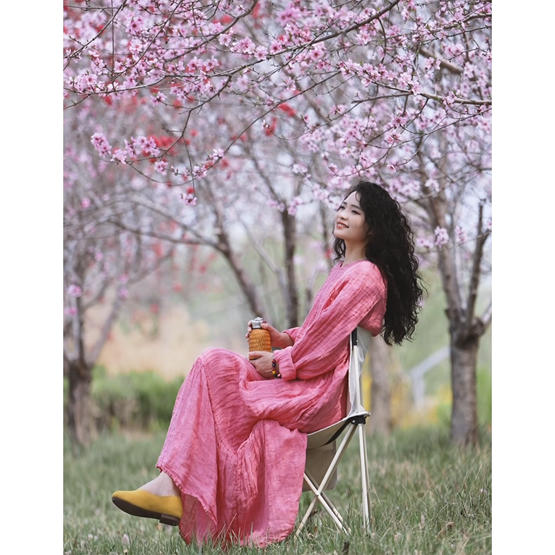 YIMIAN 巧笑倩兮清新苎麻圆领宽松显瘦开衫连衣裙2624575