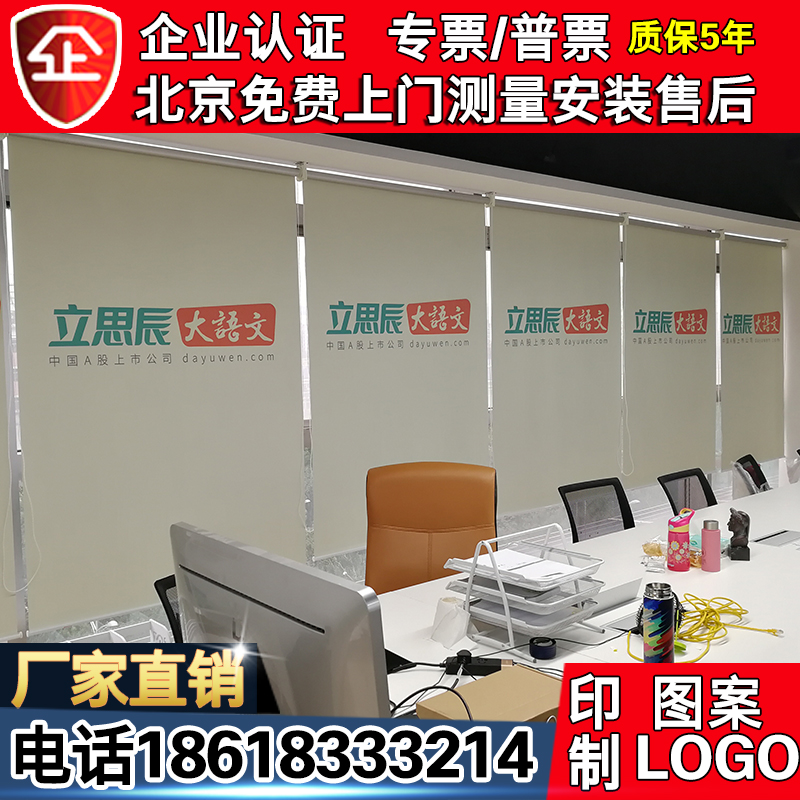 天津柏拉图写字楼会议室电动升降遮光办公卷帘窗帘百叶帘logo定制