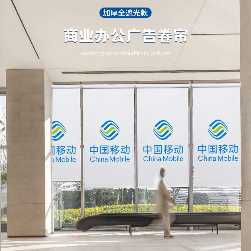 定制卷帘窗帘办公室工程银行LOGO广告图案遮光遮阳电动升降卷拉式