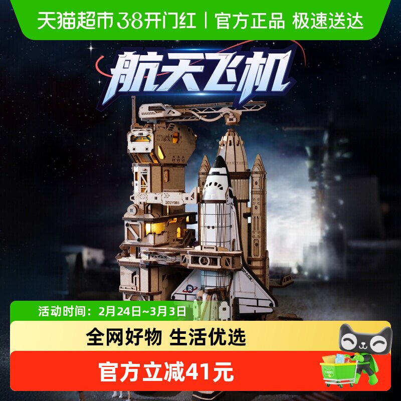 若客航天飞机国产积木玩具男生男孩生日礼物diy手工木质拼装1个