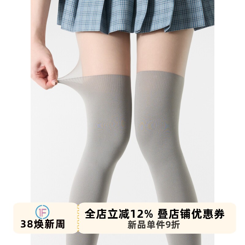 深灰色连裤袜秋冬假大腿袜高筒拼接过膝咖啡色打底袜日系JK白丝女