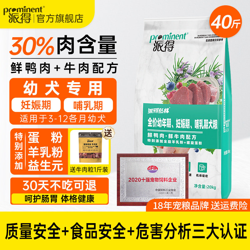 派得鲜肉狗粮40斤装通用型金毛萨摩耶拉布拉多小中大型幼犬粮20kg