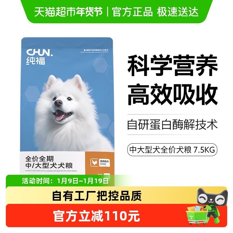 醇粹黑标狗粮成犬幼犬通用型大型犬金标15KG纯粹犬粮金毛萨摩耶
