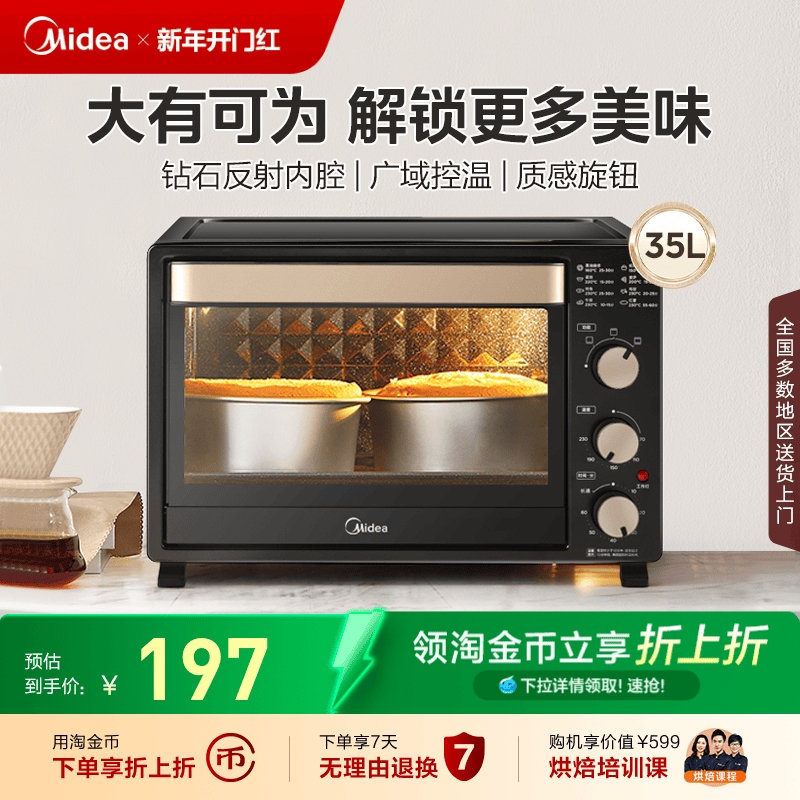 美的烤箱烘焙专用家用小型空气炸烘烤一体大容量多功能电烤箱3515