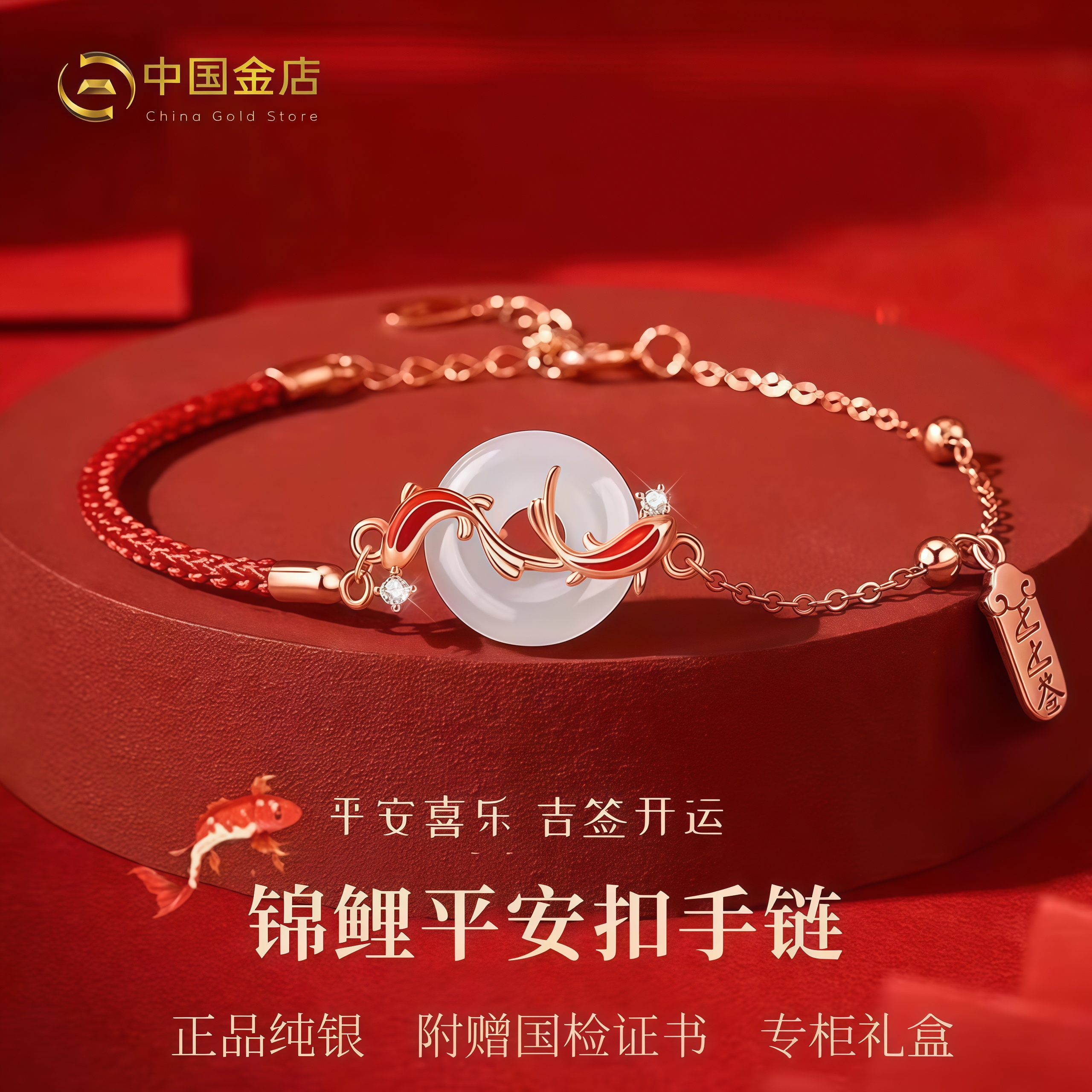 锦鲤平安扣纯银手链高级感生日礼物女生送闺蜜妈妈女友情人节实用