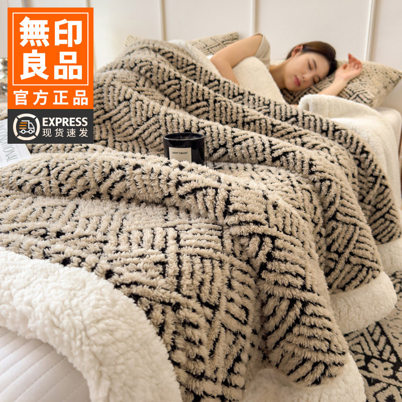 无印良品2025新款无印风双面牛奶绒毛毯盖毯保暖加厚床单冬季毯子