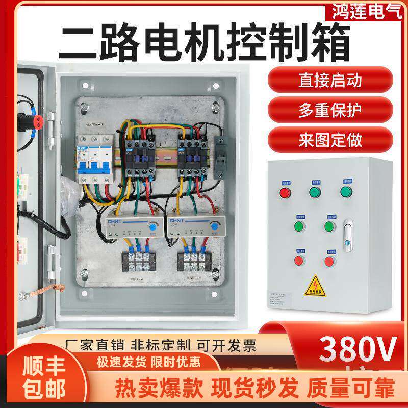 两台风机独立控制2路电机水泵启动停止电控箱380V缺相过载保护柜