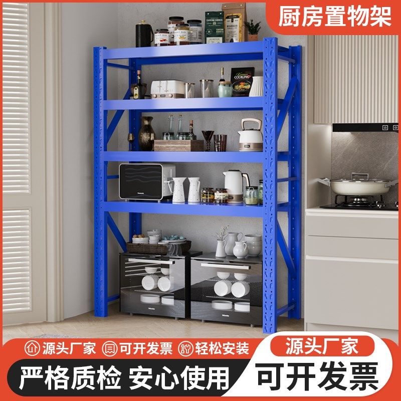 厨房置物架仓库加高中型仓储货架家用铁架靠墙五层储物架快递货架
