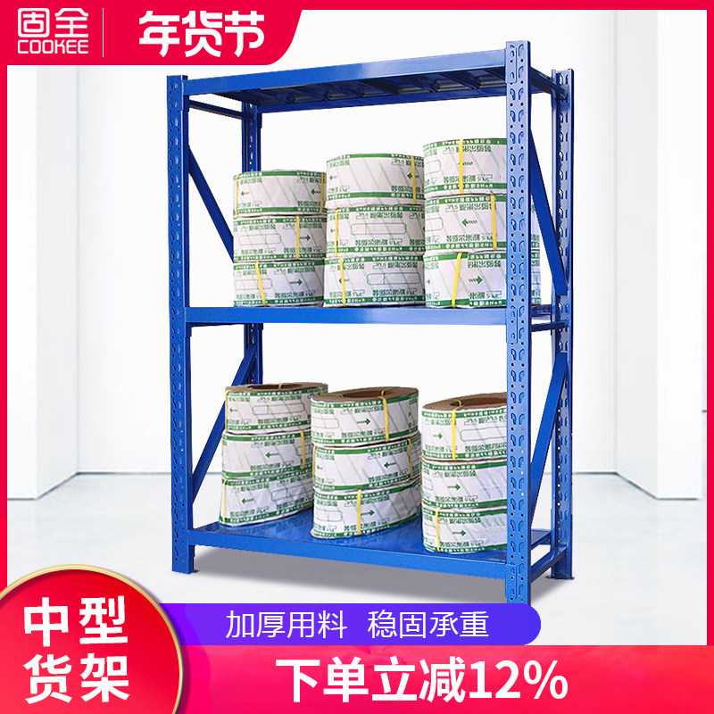 固全货架中型仓储货架三层仓储家用中重型库房仓库货架承重280KG