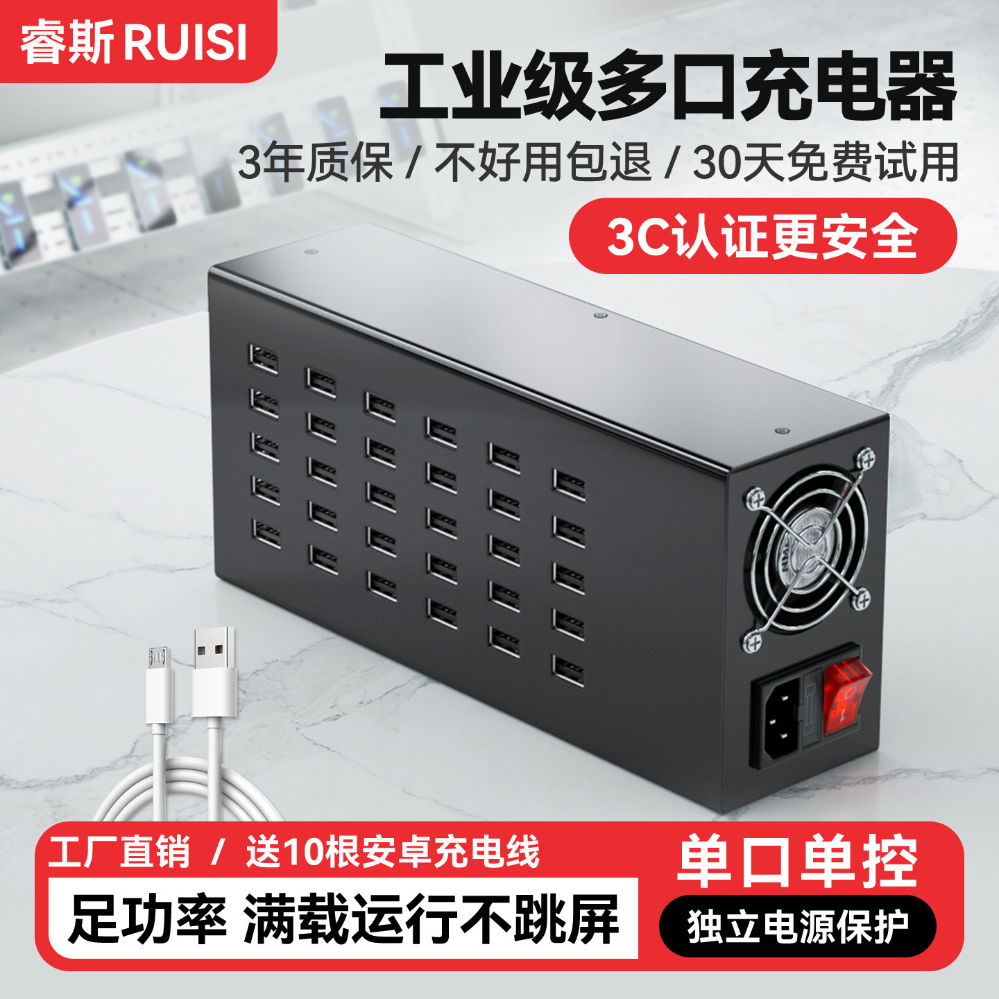 睿斯usb多口充电器多孔插头桌面20/40接口10手机充电桩工作室快充安卓适用苹果集线器大功率多功能排插座电源