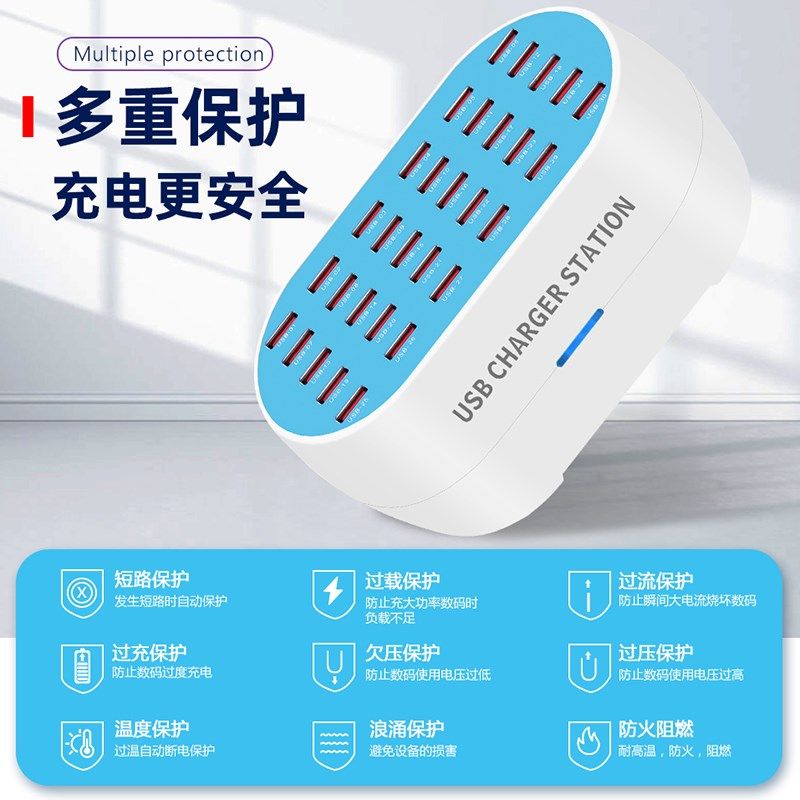 usb多口充电器多孔充电站插头10/20/30/5060口插座工作室大功率适用苹果小米安卓手机接口集成桌面排插充电桩
