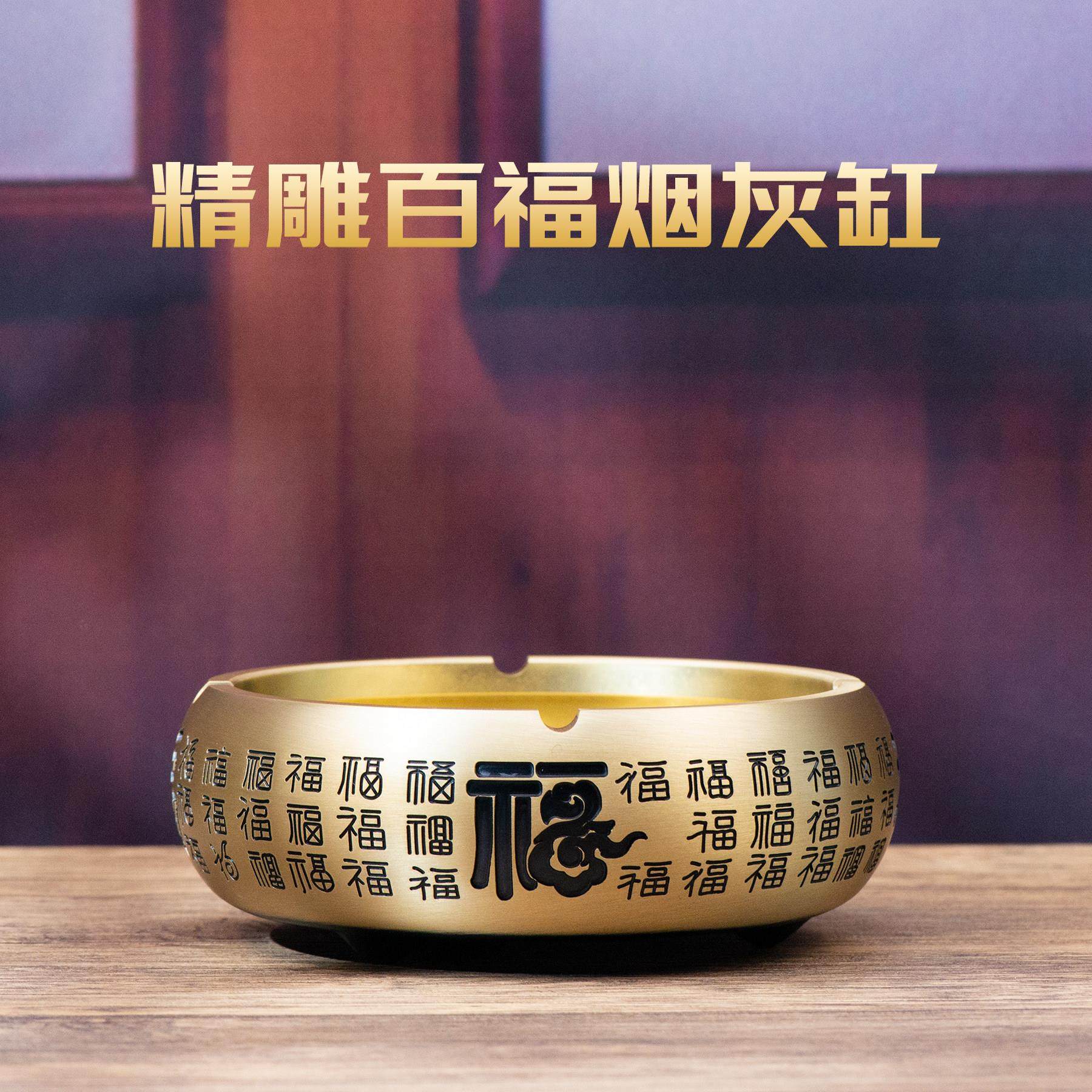 小铜记黄铜烟灰缸百福新中式家用客厅防飞灰办公室轻奢高档烟灰缸