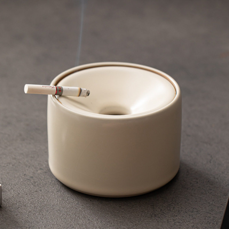 2026陶瓷高档烟灰缸带盖创意家用客厅办公室烟灰漏斗防飞灰中式