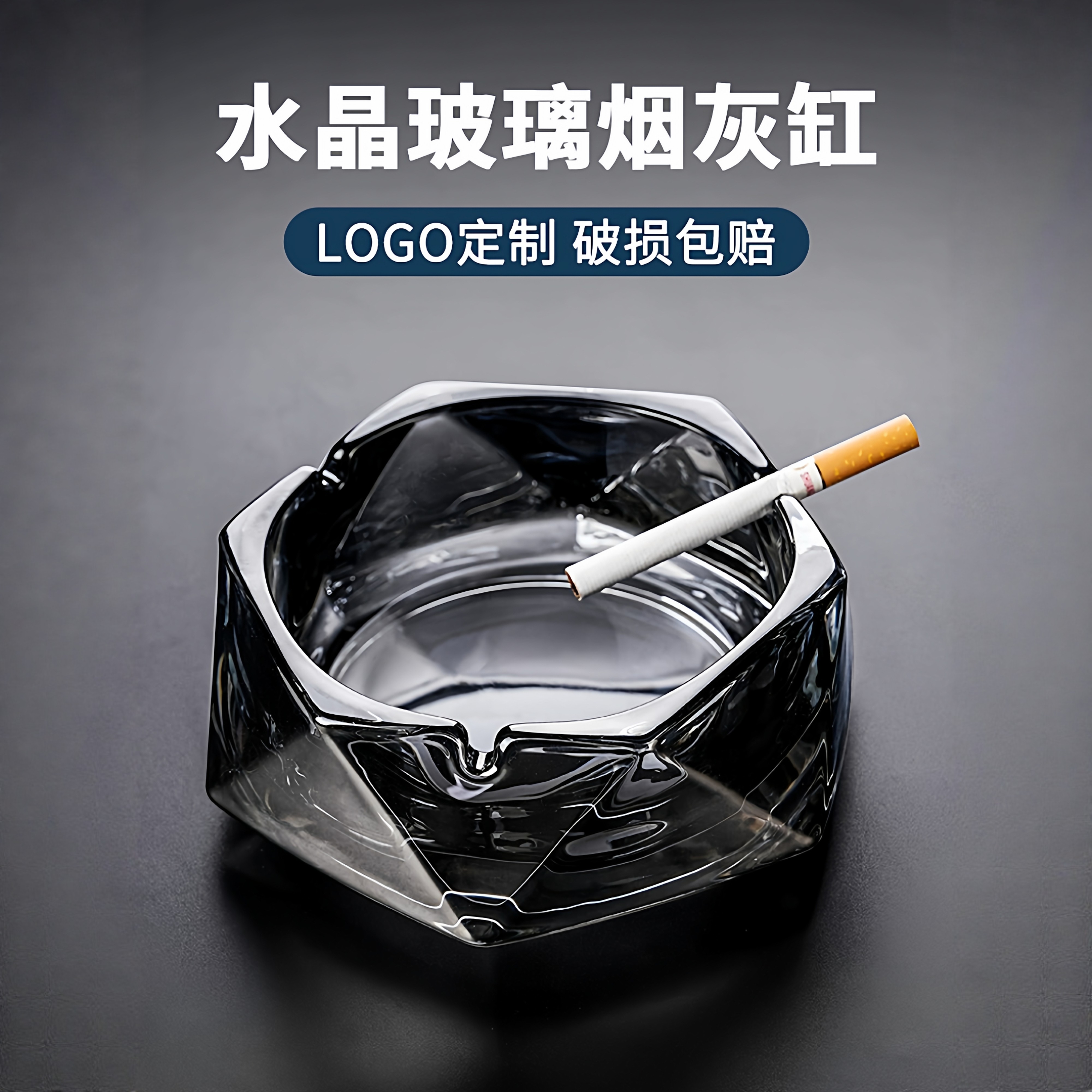 轻奢商务水晶玻璃潮流欧式水晶创意定制印字客厅办公室高档烟灰缸