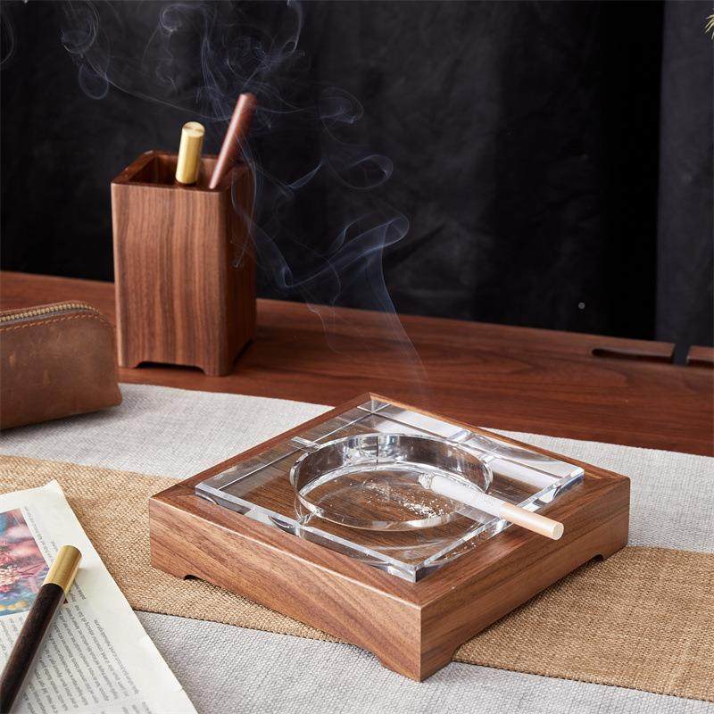 黑胡桃木木烟灰缸质性轻奢大813号烟缸烟个灰缸高档烟灰缸厂家直