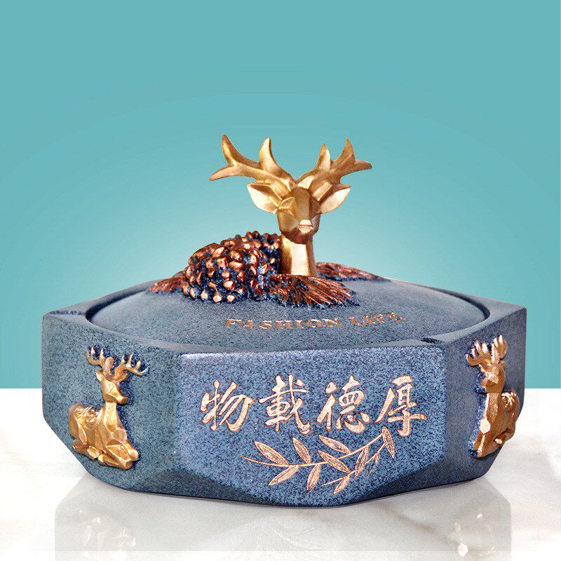 个性创意办公室高档烟灰缸 带盖防飞灰家用客厅茶几欧式摆件烟灰