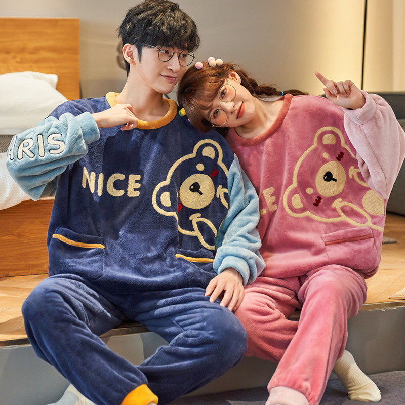 - 女冬季加厚珊瑚绒夹棉睡衣