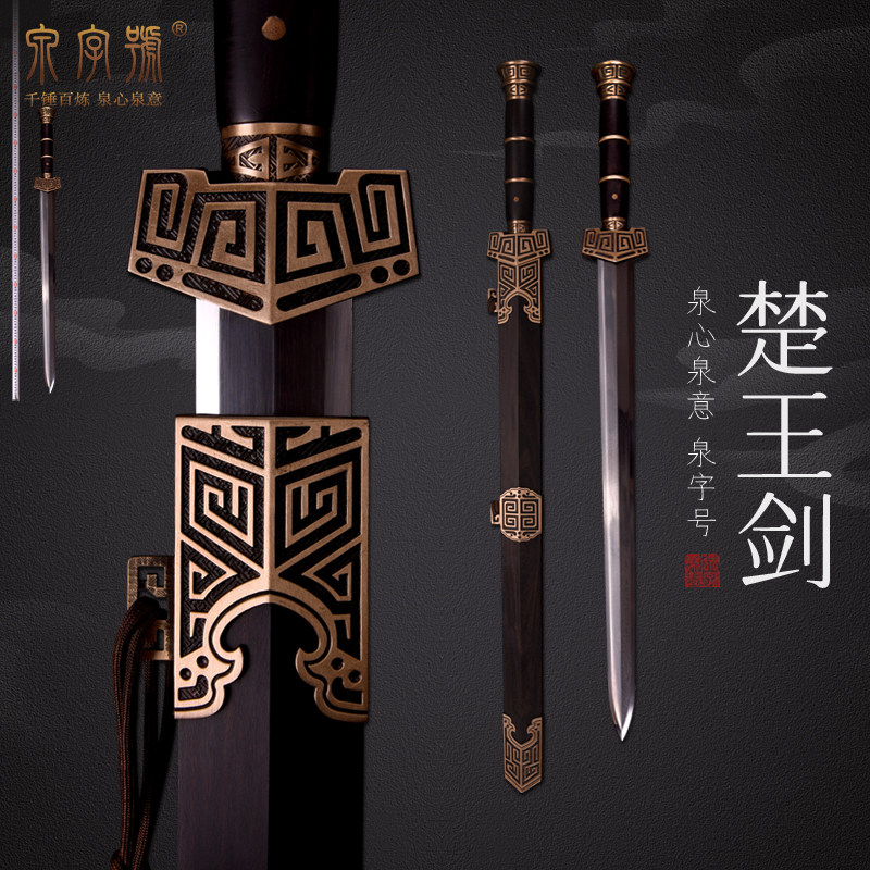 龙泉宝剑 至尊八面汉剑 花纹钢黑檀木鞘刀剑一体硬剑未开刃旗舰店