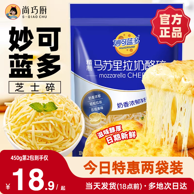 妙可蓝多芝士碎450g拉丝家用披萨材料马苏里拉烘焙空气炸锅奶酪条