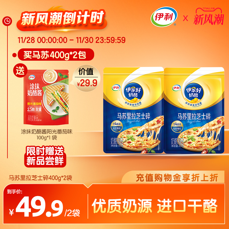 伊利马苏里拉芝士碎400g拉丝家用商用披萨材料奶酪条空气炸锅