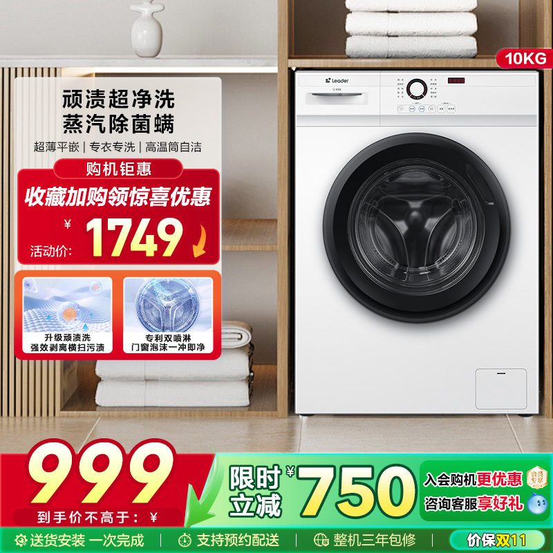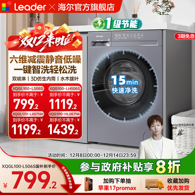 全民补贴海尔leader统帅10/12kg滚筒洗衣机全自动家用洗烘大容量