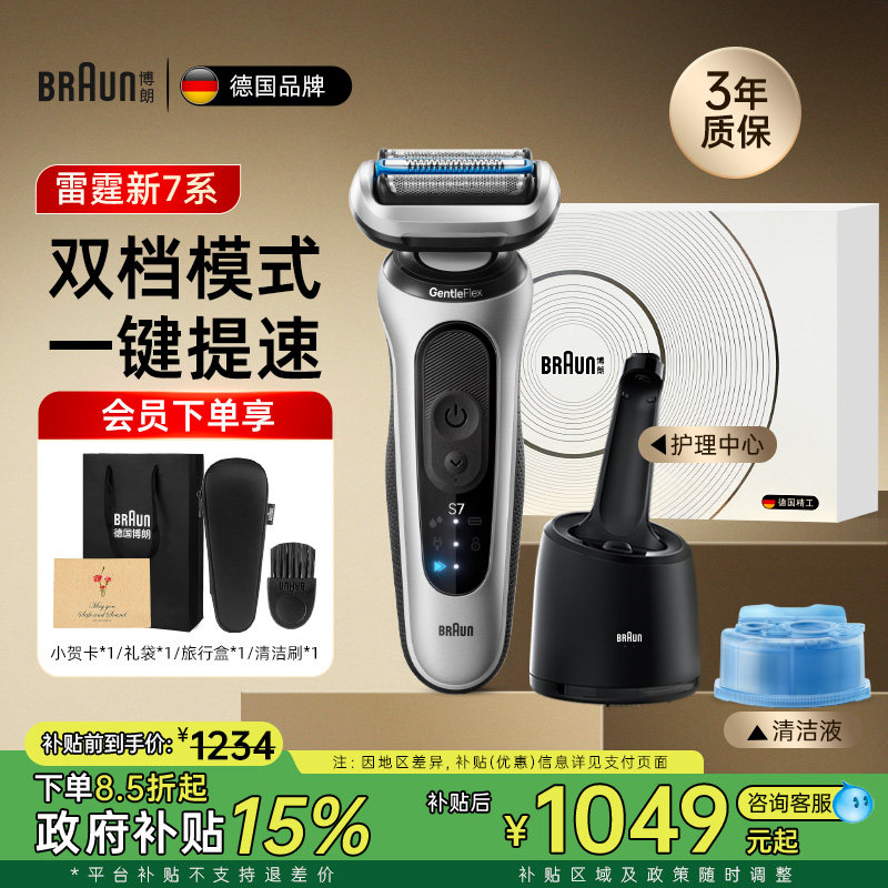 博朗电动剃须刀雷霆7系pro男士充电胡须刀送礼物长辈小猎豹7000CC