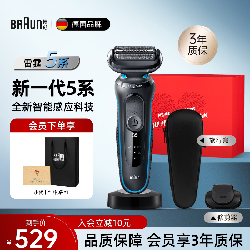 博朗电动剃须刀雷霆5系快充往复式刮胡刀送男友生日礼物山姆同款