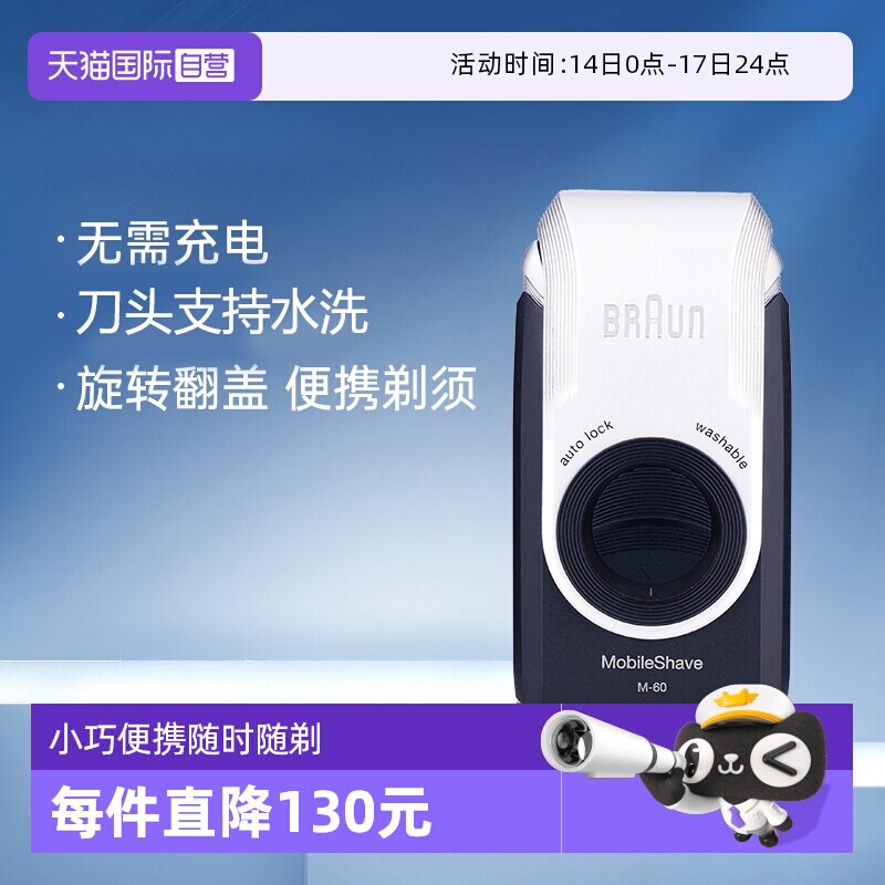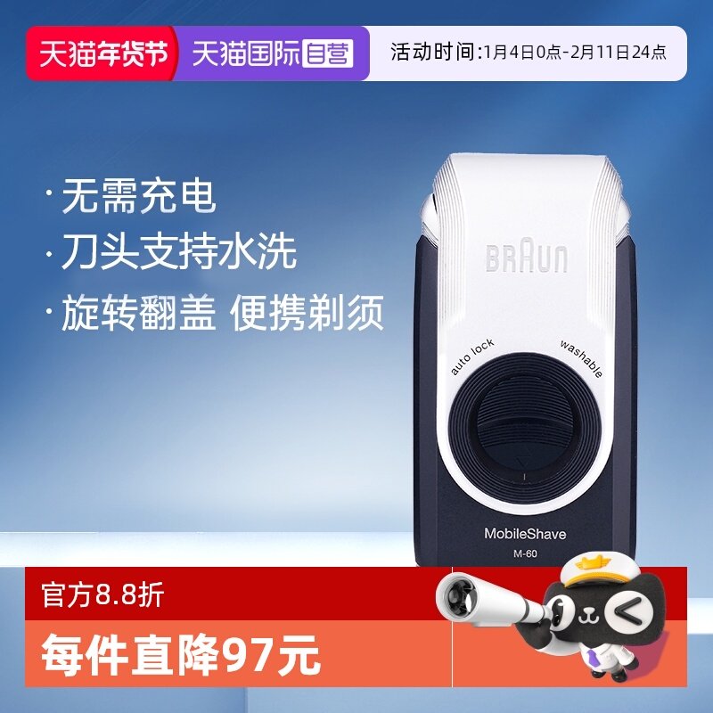 【自营】博朗电动剃须刀便携迷你M60往复干电池式刮胡刀差旅车载