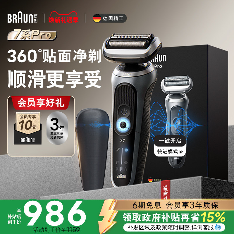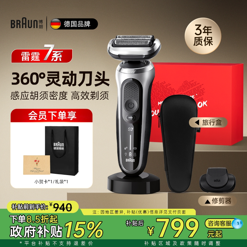 【政府补贴】博朗雷霆7系pro电动剃须刀便携往复式便携刮胡刀