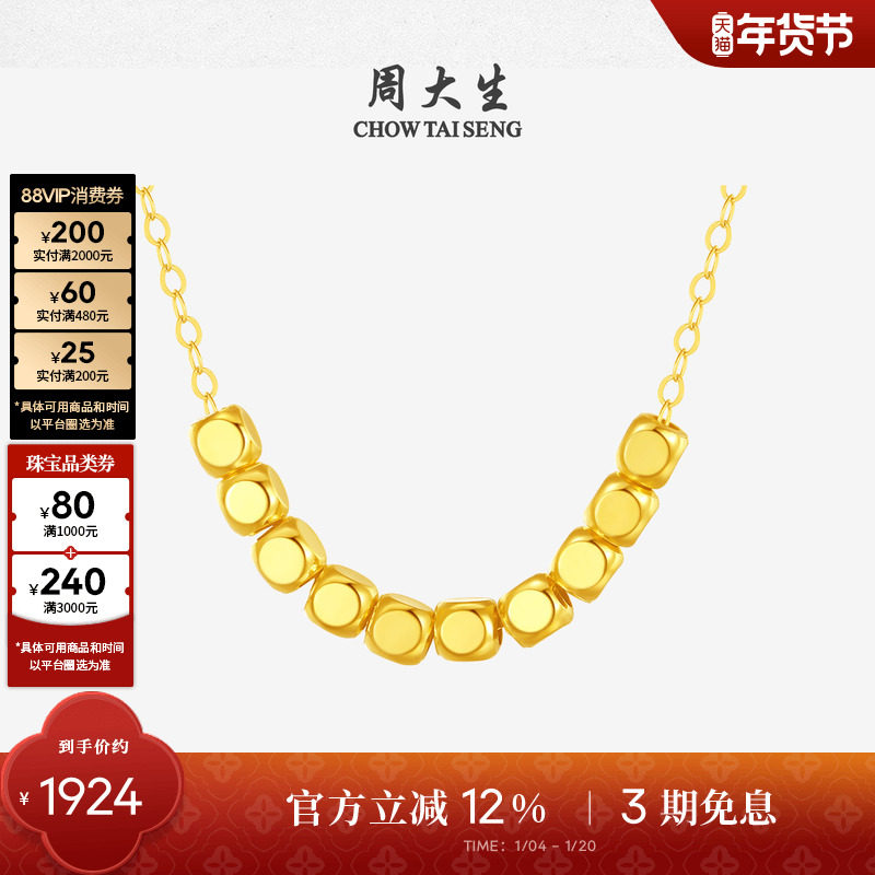 周大生18K金项链小方糖玫瑰金彩金套链颈链锁骨链送女友新年礼物