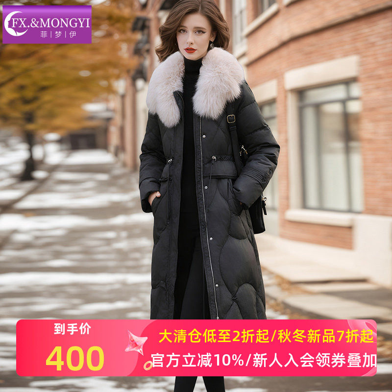 - 羽绒服毛领女中长款宽松