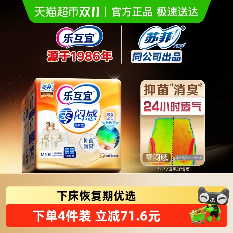 乐互宜零闷感内裤型成人纸尿裤尿不湿产妇瞬吸防漏加厚拉拉裤M码