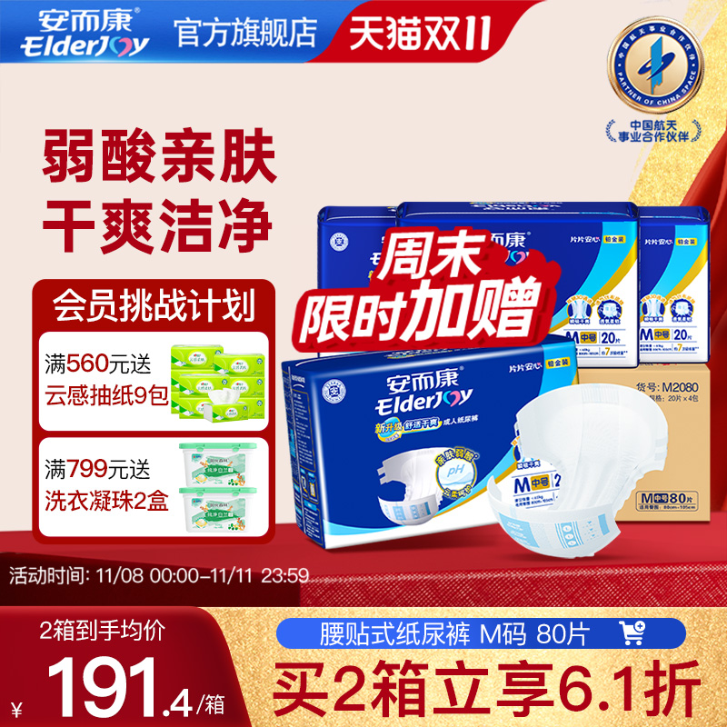 安而康舒适成人纸尿裤尿不湿纸尿垫老年人用老年人尿片中码m80片